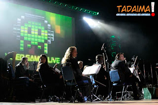 Aí então o show finalmente começou, com vários temas de jogos bastante antigos, como Space Invaders, Tetris e muitos outras músicas até então só ouvidas de consoles como Atari. Depois disso veio Metal Gear e God of War, só pra começar a animar o pessoal. Em seguida Tallarico pergunta quem na platéia gostaria de subir ao palco para jogar algo. Rafael Eduardo Paulin é escolhido e o título escolhido “aleatóriamente” foi Space Invaders. Ele tinha dois minutos para fechar a primeira fase, algo aparentemente simples… Se ele não tivesse que se mover junto com a nave.